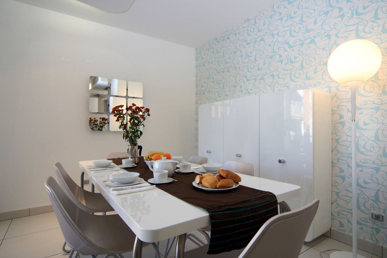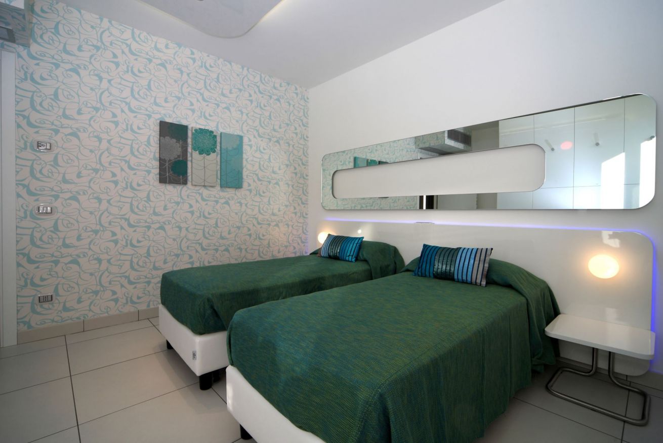 Questo appartamento è ideale per 4 persone (1 camera matrimoniale e 1 camera con 2 letti singoli +1 divano letto su prenotazione e a pagamento). La terrazza esposta a nord è arredata con tavolo e sedie ed offre una vista parziale sul lago. La cucina è completamente arredata.