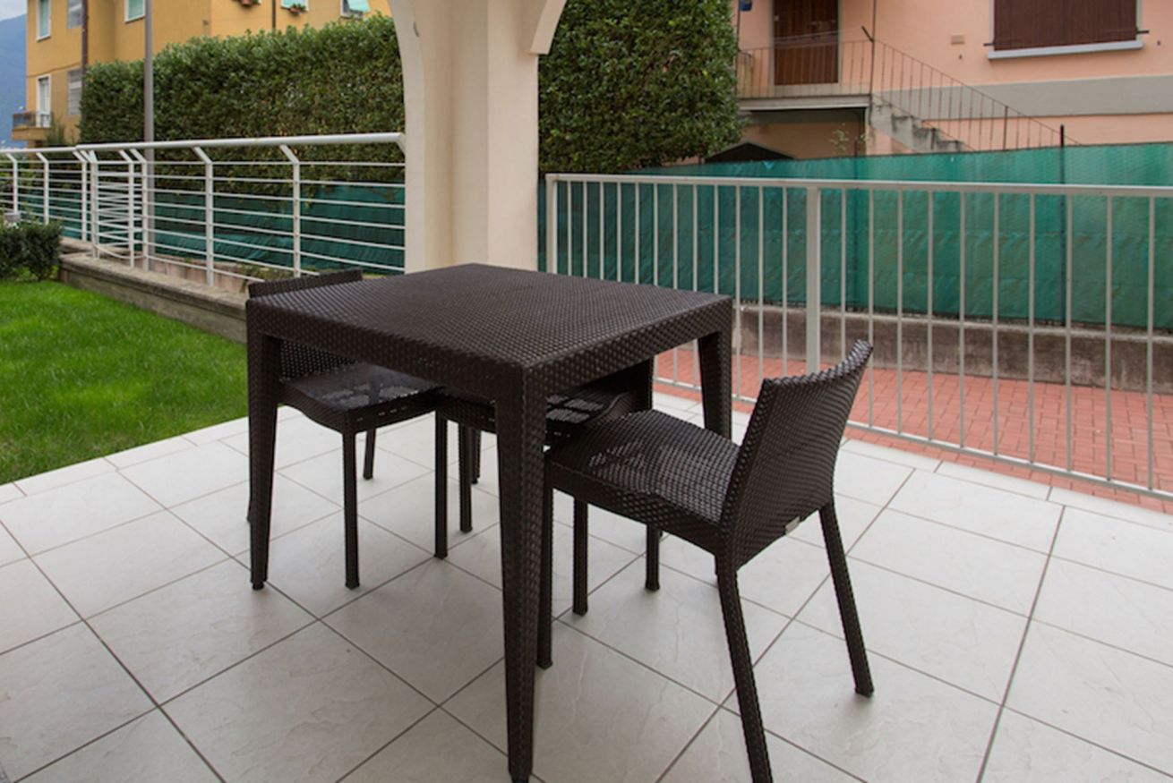 Appartamento, ideale per una coppia, dispone di una camera con letto matrimoniale. La terrazza e il giardino esposti a nord-ovest sono arredati con tavolo e sedie. La cucina è completamente arredata ed è dotata di tutti gli utensili.