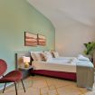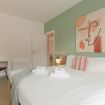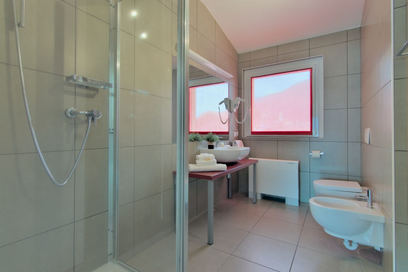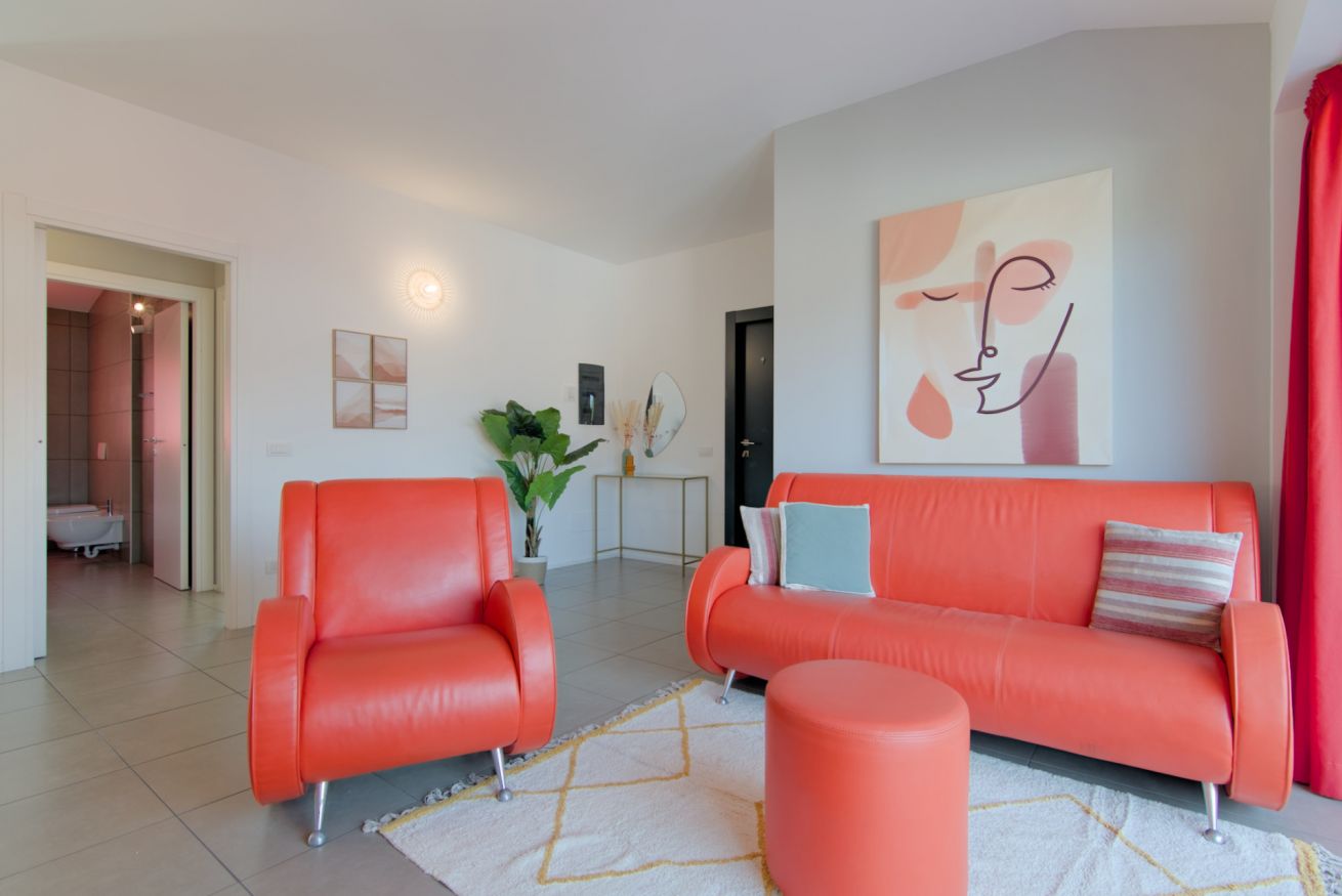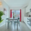 Penthouse con una camera da letto matrimoniale e una con due letti singoli. Il balcone rivolto a nord-ovest è arredato con tavolo e sedie mentre la terrazza per sul lato est dell'edificio è attrezzata con sedie e tavolino. La cucina è completamente arredata e accessoriata. Jacuzzi disponibile solo da metà giugno a fine settembre.